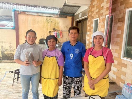 โดยมี ผศ.ดร.หทัยกาญจน์ กกแก้ว ผู้เชี่ยวชาญ/ที่ปรึกษา จากมหาวิทยาลัยนครพนม เป็นวิทยากรร่วมฝึกปฏิบัติ ถ่ายทอดองค์ความรู้ด้านการจัดทำต้นแบบผลิตภัณฑ์ “ข้าวเกรียบปลา และไส้กรอกข้าวไรซ์เบอรี่” โดยเน้นกระบวนการมีส่วนร่วมทุกขั้นตอน เพื่อให้สมาชิกกลุ่มวิสาหกิจสามารถเรียนรู้ ฝึกปฏิบัติจริง และพัฒนาต้นแบบผลิตภัณฑ์ให้สามารถนำไปใช้ต่อยอด เพิ่มมูลค่า และสร้างโอกาสทางการตลาดได้อย่างยั่งยืน